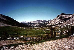 The floor of Big Arroyo was green and lush. I saw no one in this valley or anywhere else on the trail between Precipice Lake and Moraine Lake.
